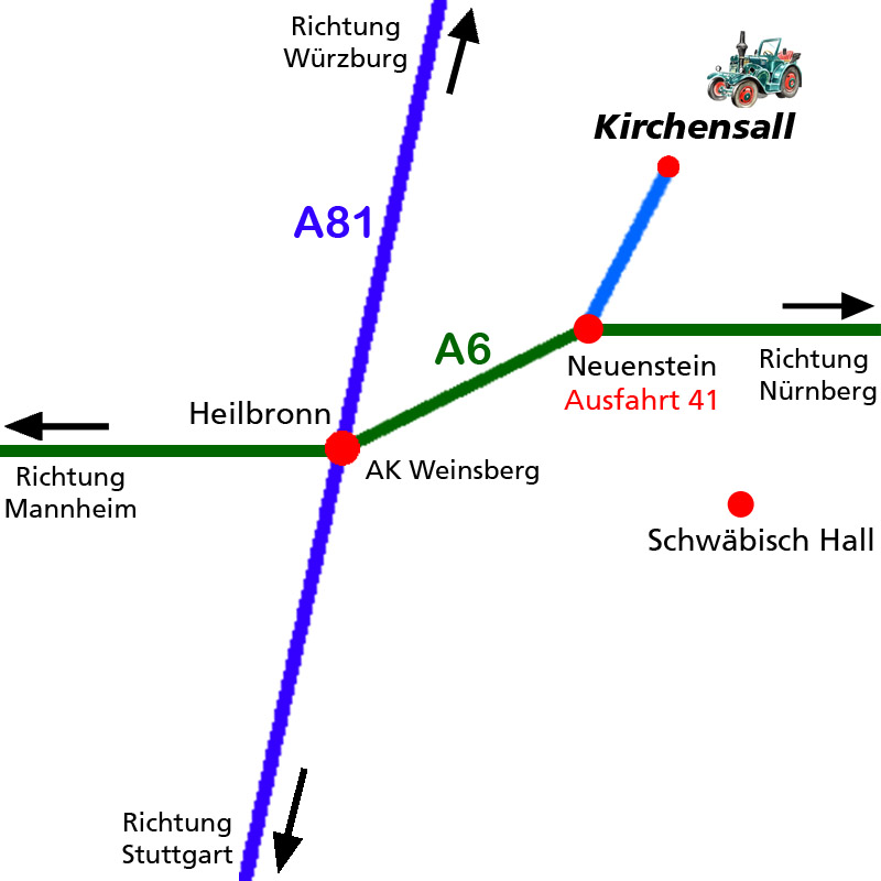Autobahn A6, Ausfahrt Neuenstein (E50), dann rechts abbiegen